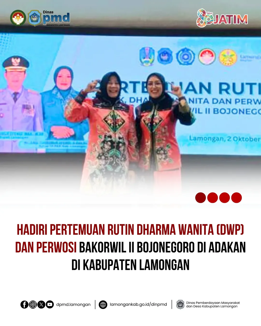 PERTEMUAN RUTIN DHARMA WANITA (DWP) DAN PERWOSI BAKORWIL II BOJONEGORO DI ADAKAN DI KABUPATEN LAMONGAN