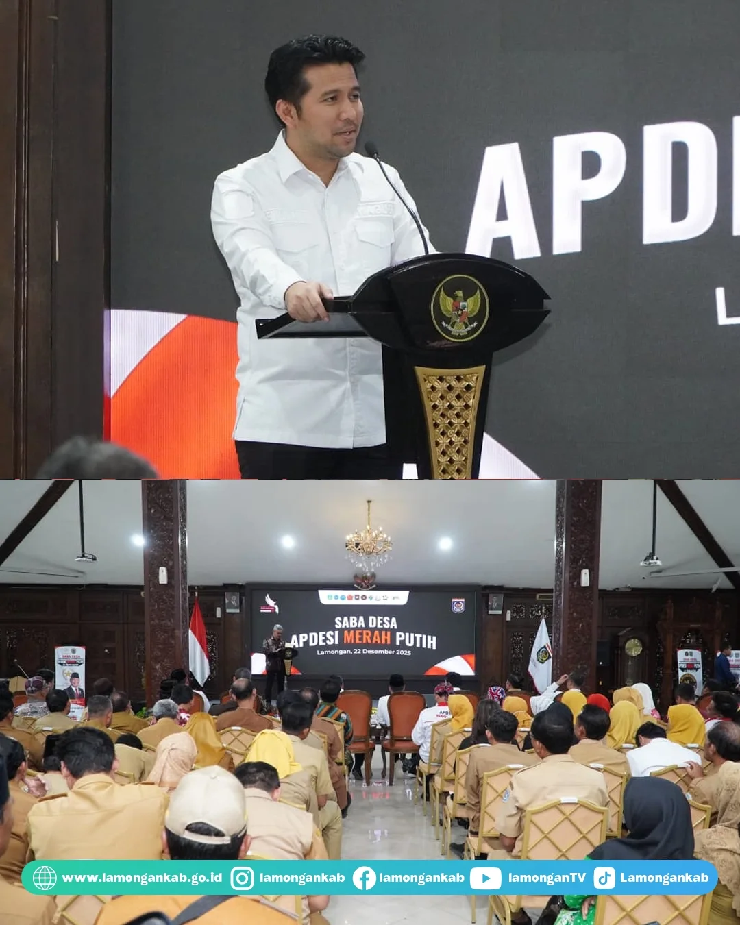 Disampaikan oleh Bupati Lamongan Yuhronur Efendi pada seremonial saba desa Dewan Pimpinan Pusat Asosiasi Pemerintah Desa Seluruh Indonesia (DPP Apdesi) Merah Putih, Senin (22/12) di Pendopo Lokatantra, komitmen Kabupaten Lamongan dalam memberdayakan desa juga ditunjukkan oleh pemaksimalan aktualisasi program Koperasi Desa Merah Putih (KDMP).