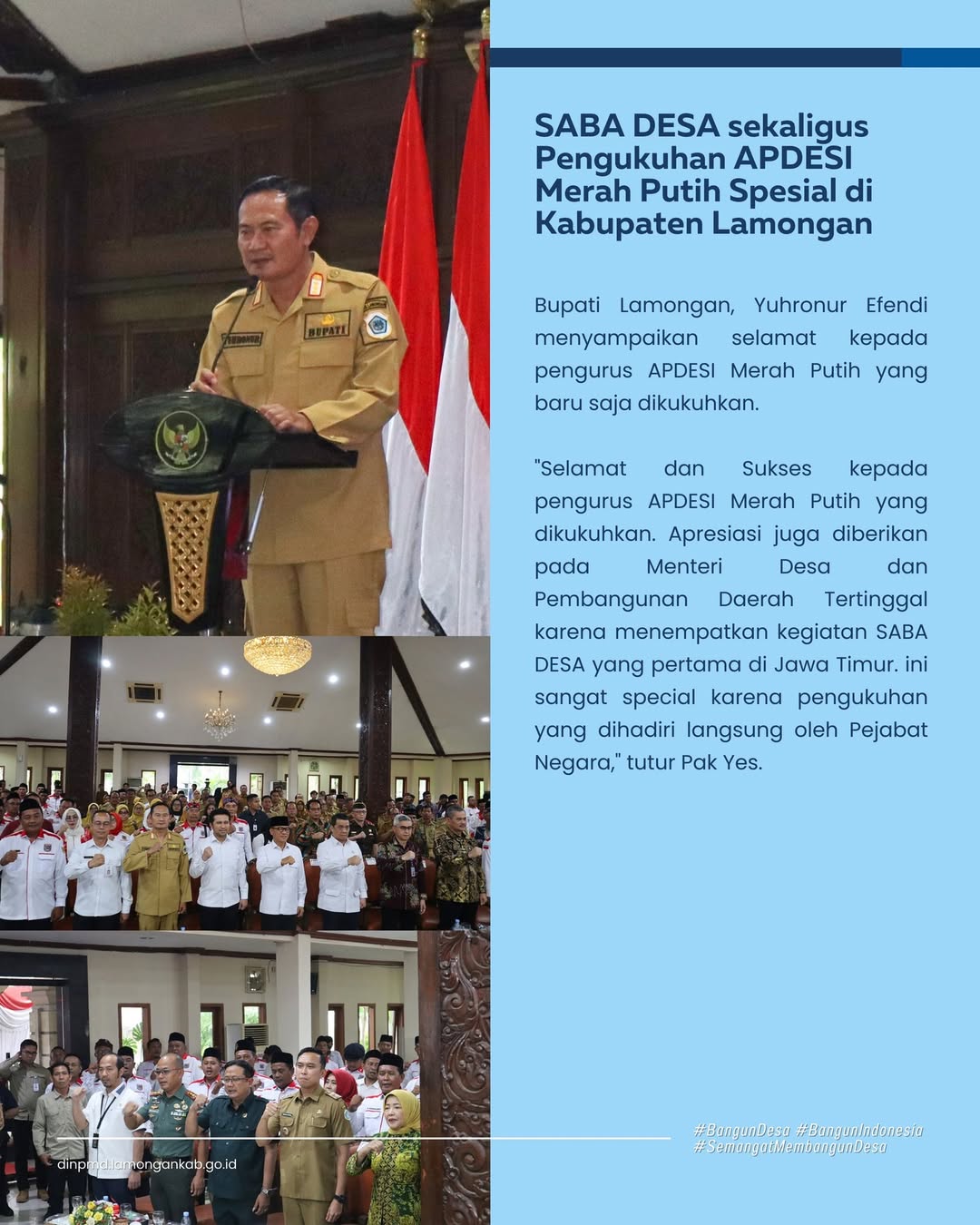SABA DESA SEKALIGUS PENGUKUHAN APDESI MERAH PUTIH SPESIAL DI KABUPATEN LAMONGAN