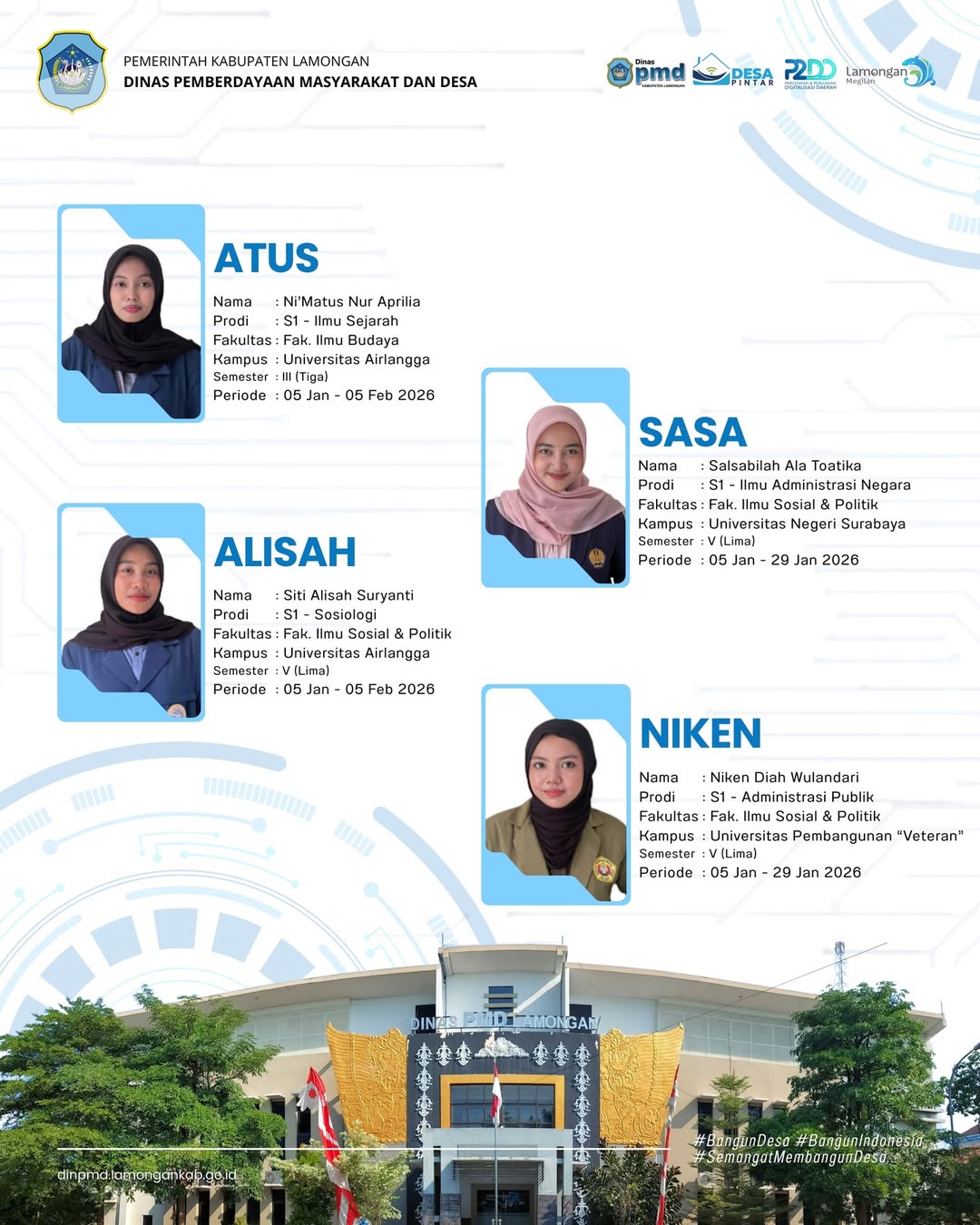 MAHASISWA MAGANG JALUR MANDIRI DI KANTOR DINAS PEMBERDAYAAN MASYARAKAT DAN DESA KABUPATEN LAMONGAN PERIODE JANUARI - FEBRUARI 2026